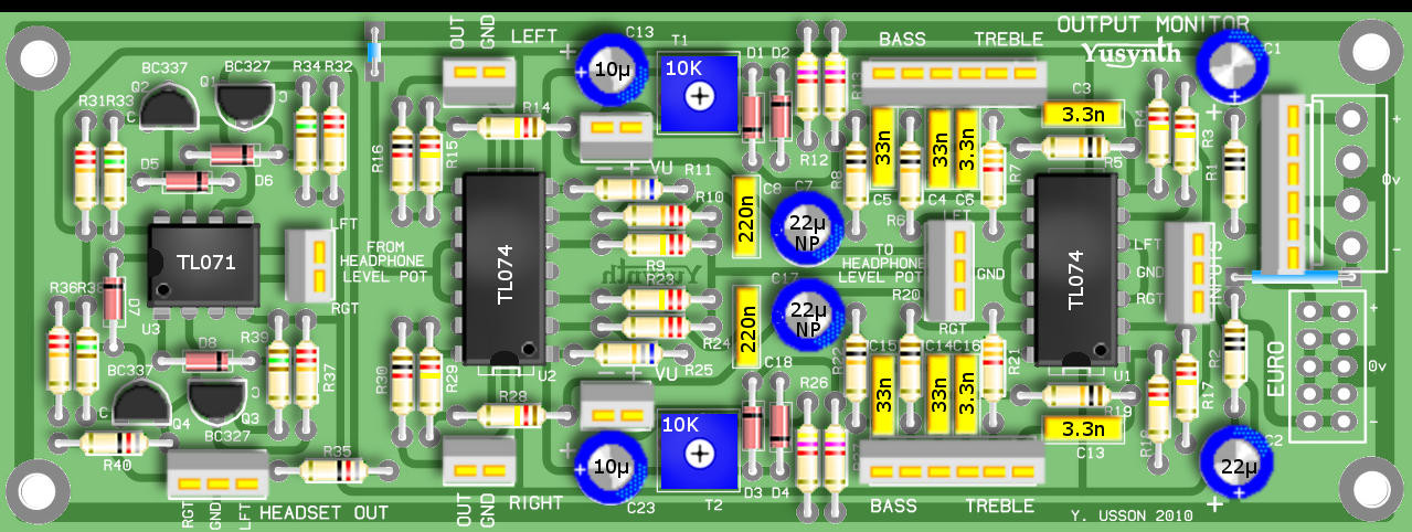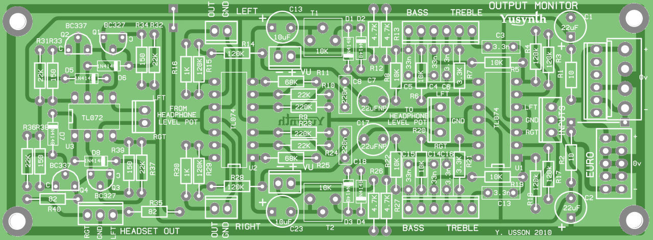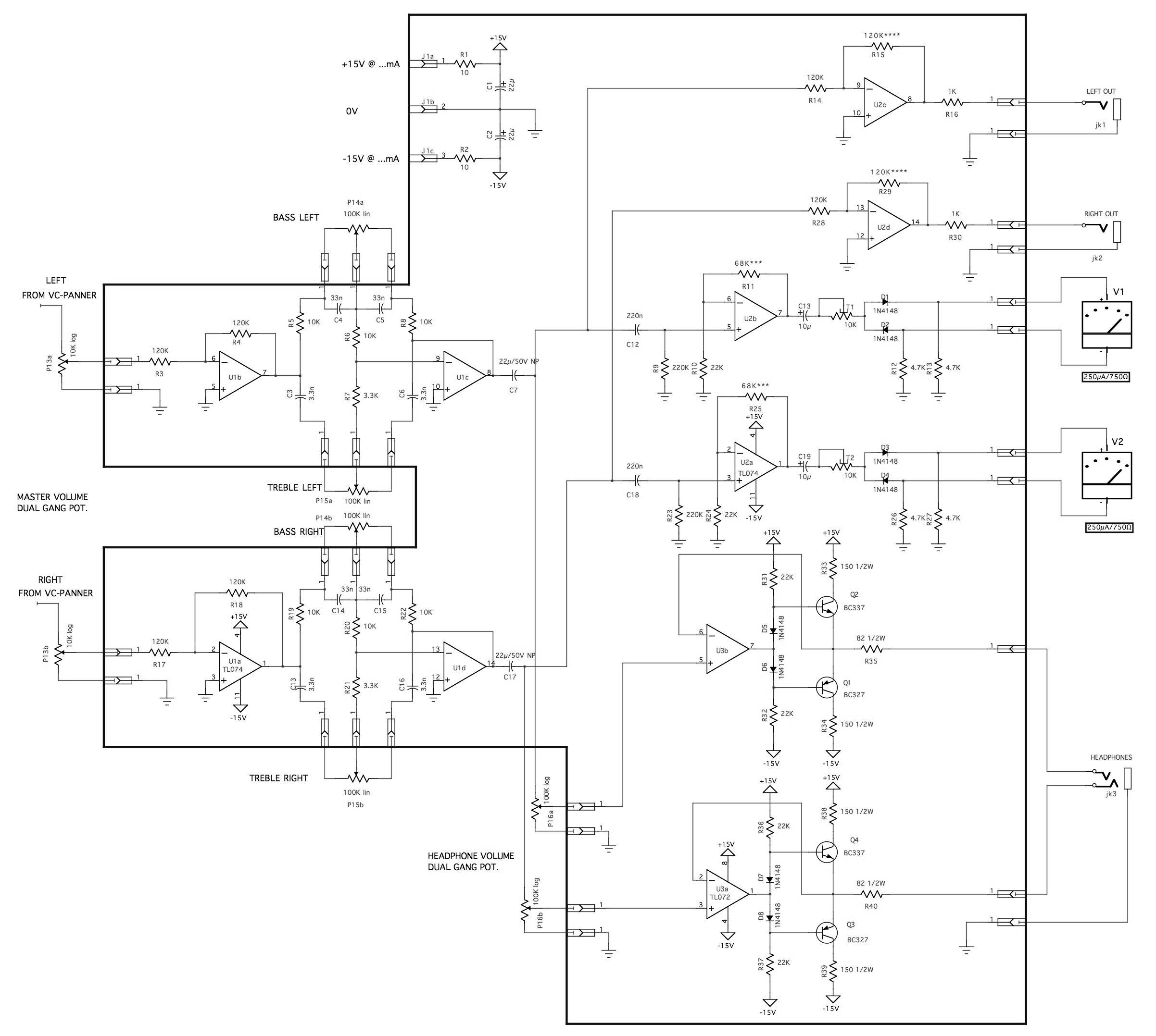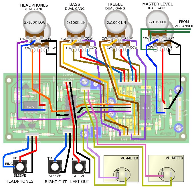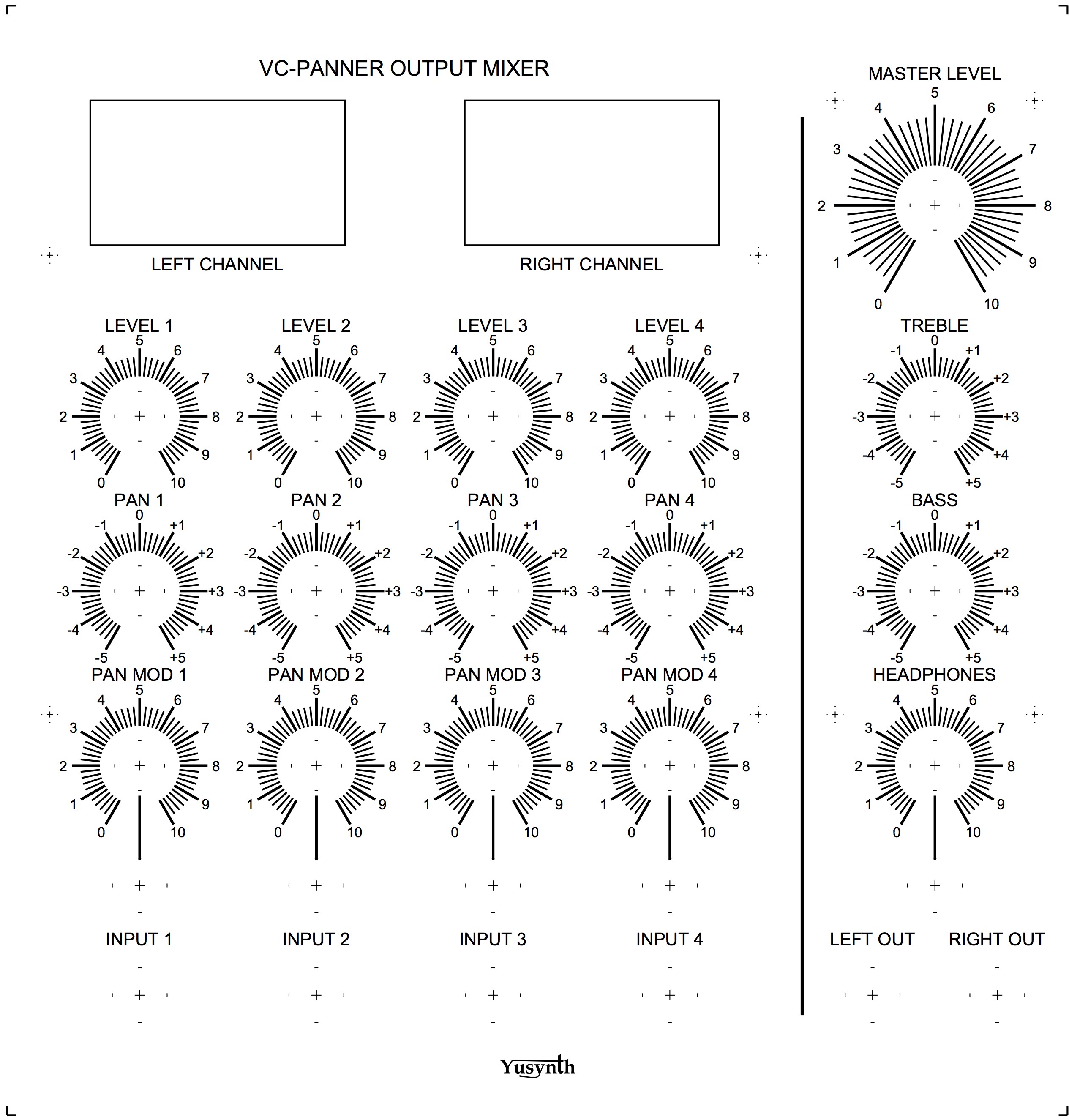 VC-Panner The trimmers T101 to T104 are used to adjust the midrange for the paning for each channel. Basically, for each channel :