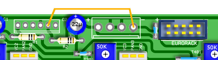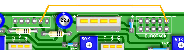 Solder a strap wire between the negative solder pads of the DOTCOM imprint and the Eurorack imprint ![]() |