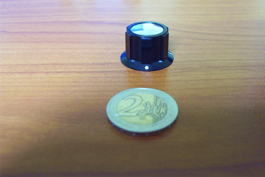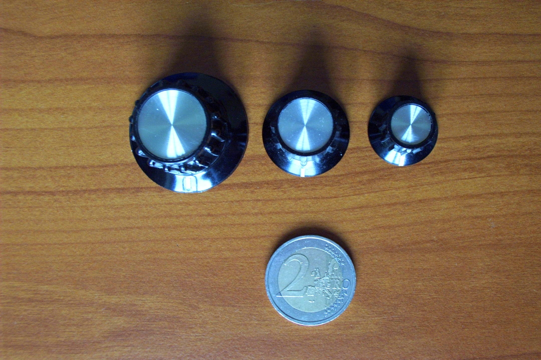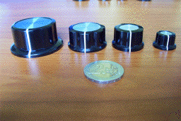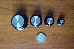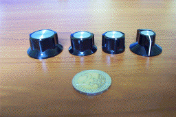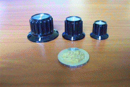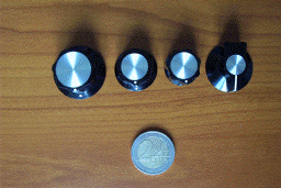 new and elegant B module series. I like these knobs very much : they are very nice and the tactile feeling is very good and frank. They are available in two sizes from Maplin : KB4: Diameter 20mm. Height 17mm. KB3: Diameter 35mm. Height 22mm. £ 0.69 unit price. The medium size ( diameter 25mm) can be purchased from Conrad but for a higher cost (2.55€). |