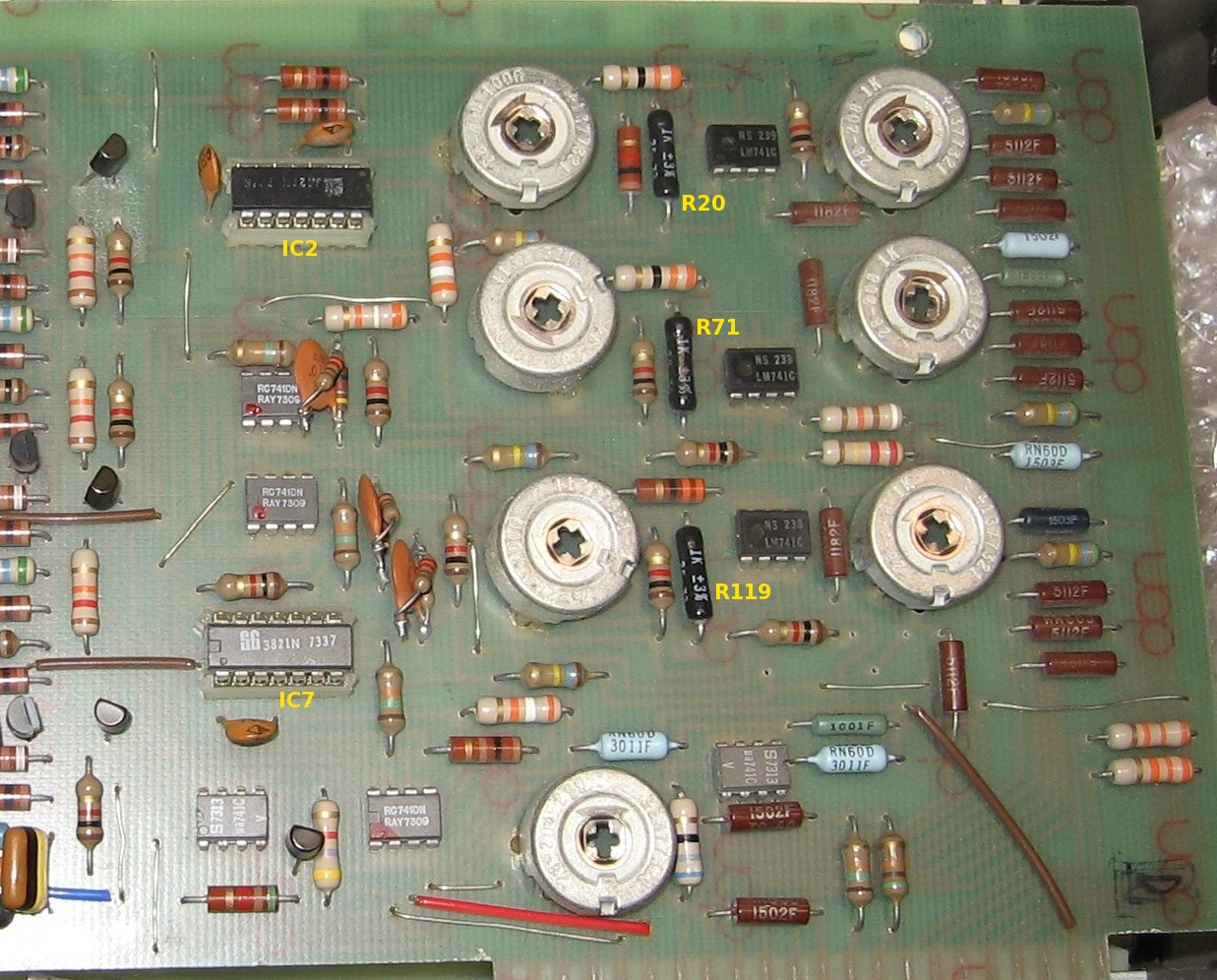 Detail of the fixation of R19 & R70 beneath and onto IC2 |