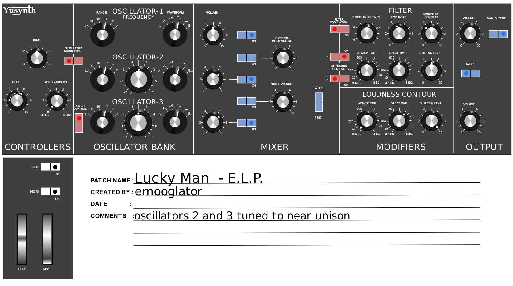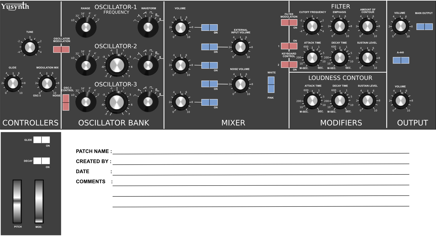 Patch sheetsI have designed a nice patch template for saving my own patches. You can download the blank patch sheet from this link . Now it's up to
